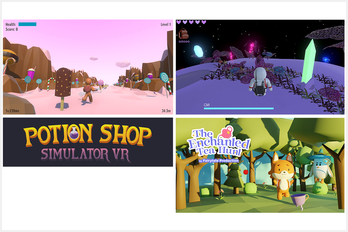 In diesem Projekt geht es darum, die Lernergebnisse des Semesters in einem lustigen VR-Spiel umzusetzen, das auch ein paar Funktionen enthält, die im Unterricht nicht behandelt wurden. "Potion Shop Simulator VR" ist ein Spiel mit kurzer Laufzeit und beinhaltete alle Skills, die Studierende sich im Studium aneignen.