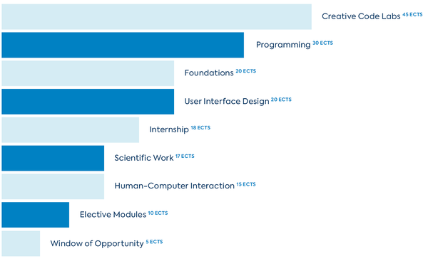Im fünften Semester kannst du eines dieser Themen im Rahmen von Gruppenprojekten vertiefen, die über ein ganzes Semester hinweg im Creative Code Lab 5 durchgeführt werden.