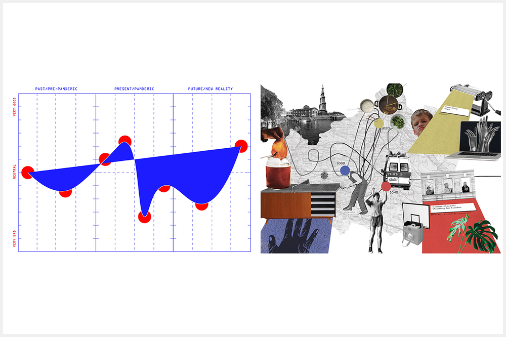 Basierend auf Vorträgen, Diskussionen und eigener Recherche entwickelten die Teilnehmer*innen Collagen mit Infografik-Elementen. Das visuelle Ergebnis ist eine Interpretation vorgegebener Themen (Good Old Habits, Lockdown Revision, New Reality etc.) und die Gestaltung intersubjektiver digitaler Emotionsgrafiken.