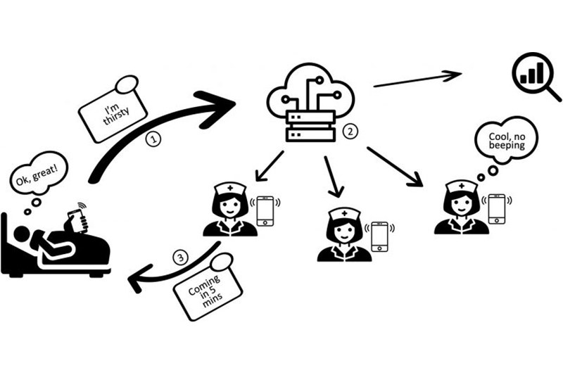 The patient gets to choose from a list of the most frequent patient requests. Once a request has been selected, nurses can respond to it. No more shrill alarms, unnecessary disturbances or ambiguity about alarms.