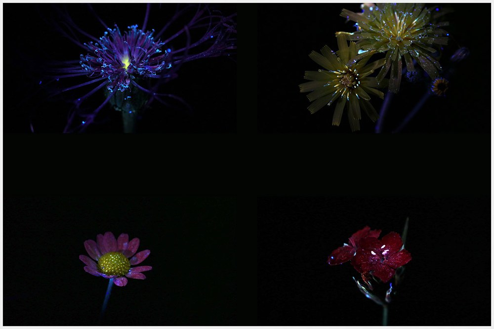 Die Kamera schafft es dabei, Reaktionen einzufangen, die das menschliche Auge nicht sehen kann. Die Bilder zeigen, wie die Blumen zu fluoreszieren beginnen. So ermöglichen sie den Betrachter*innen eine Art "erweitertes Sehen".