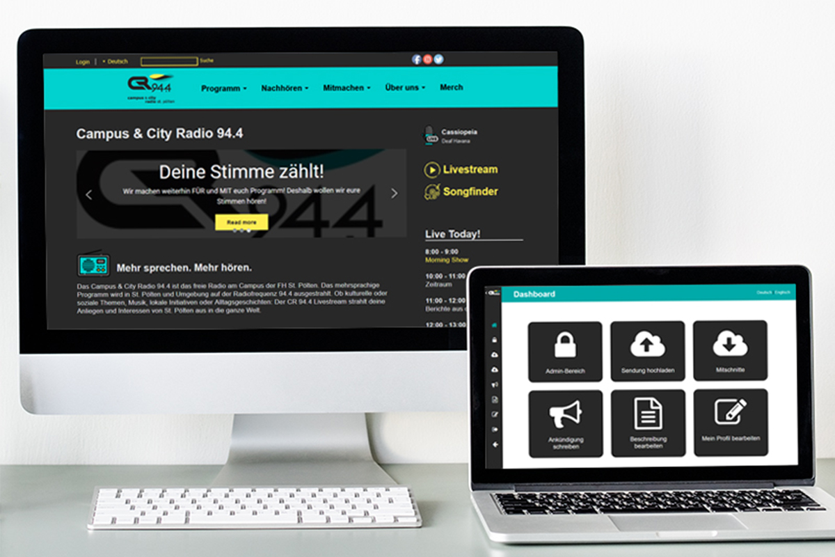 Im Rahmen des Projektsemesters wurde die Website des Campus & City Radio 94.4 der USTP – University of Applied Sciences St. Pölten überarbeitet und um ein Dashboard erweitert.