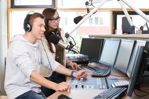 In a digital radio studio, the station teaches the craft of moderation, journalistic programme design and audio production. Students from all degree programmes can take part. Well-known radio presenters started their careers in the radio business here, for example: