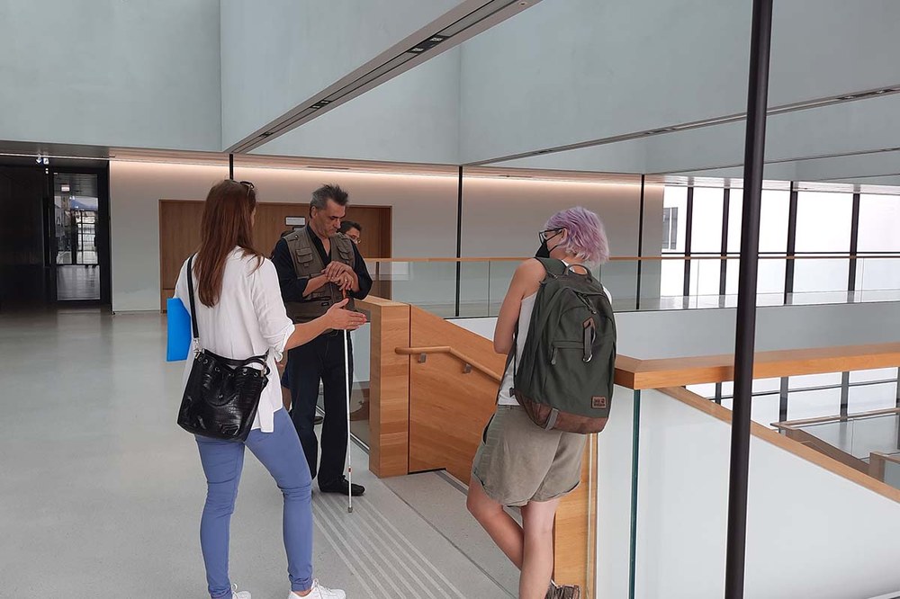 On 16 August, two external experts visited the Campus St. Pölten to inspect the UAS buildings with regard to their structural accessibility. Birgit Schierhuber, certified professional for accessible building and head of the project "BhW barrierefrei", and Harald Fiedler, business founder of TROTZ-DEM and a blind person himself, set out to verify whether there was still room for improvement.
