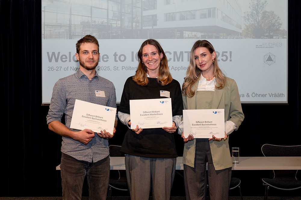 As part of the International Conference on Creative\Media/Technologies (IConCMT), held during the last week of November, the degree programme Media Technology at USTP presented the Different Brilliant Award 2025 for outstanding bachelor or master theses that exemplify applied and artistic research projects in design and media production.
