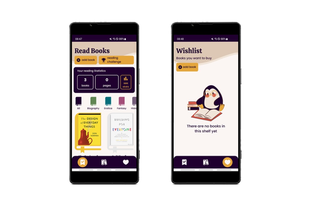 The app Bookify provides features to track reading habits. Users can maintain a wish list for desired books, keep a record of owned unread books, and create a list of completed reads. Each read entry in the list can include a review with quotes, rating, page count, book cover, reading duration, and genre. The app also offers reading statistics such as the total number of books read and pages turned. Users can set and monitor reading challenges by specifying the target number of books and the desired timeframe for completion.